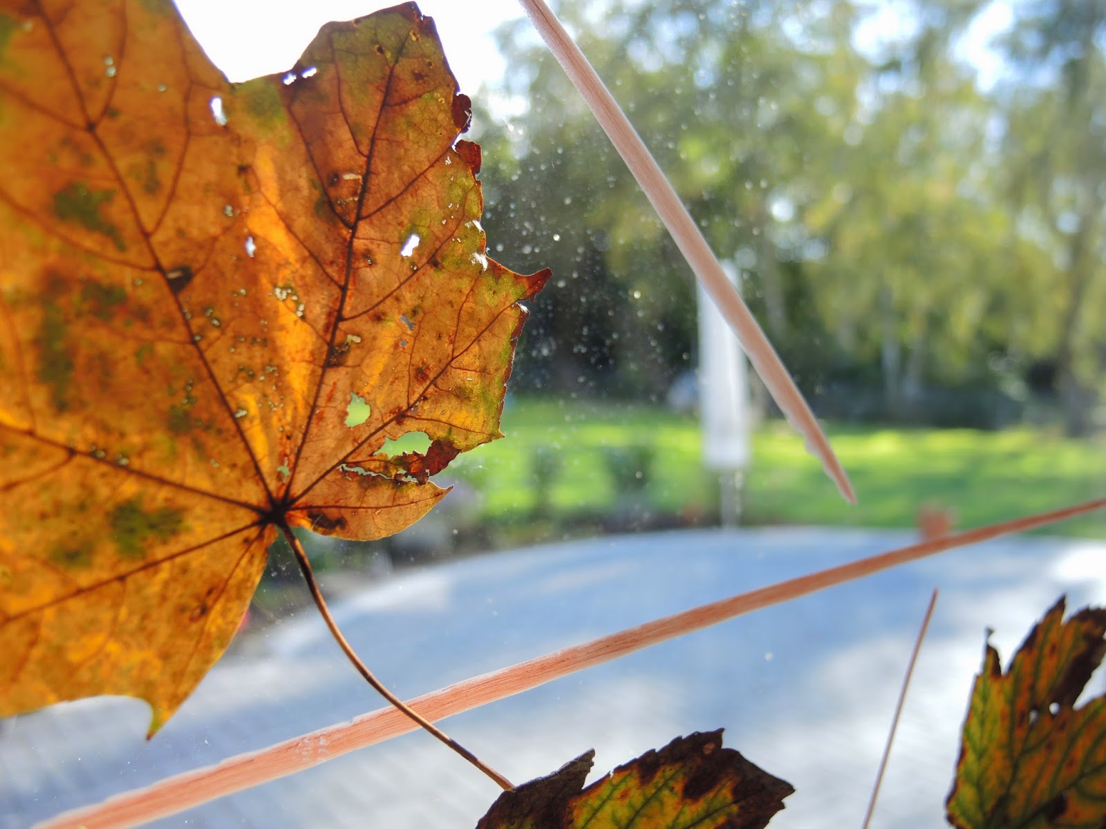 Wirklich nicht viel Aufwand mit einem ganz tollen Effekt, wenn die Sonne auf das Fenster und damit auf die bunten Blätter scheint. Dann glänzen diese ganz toll in den wunderschönsten Herbstfarben.